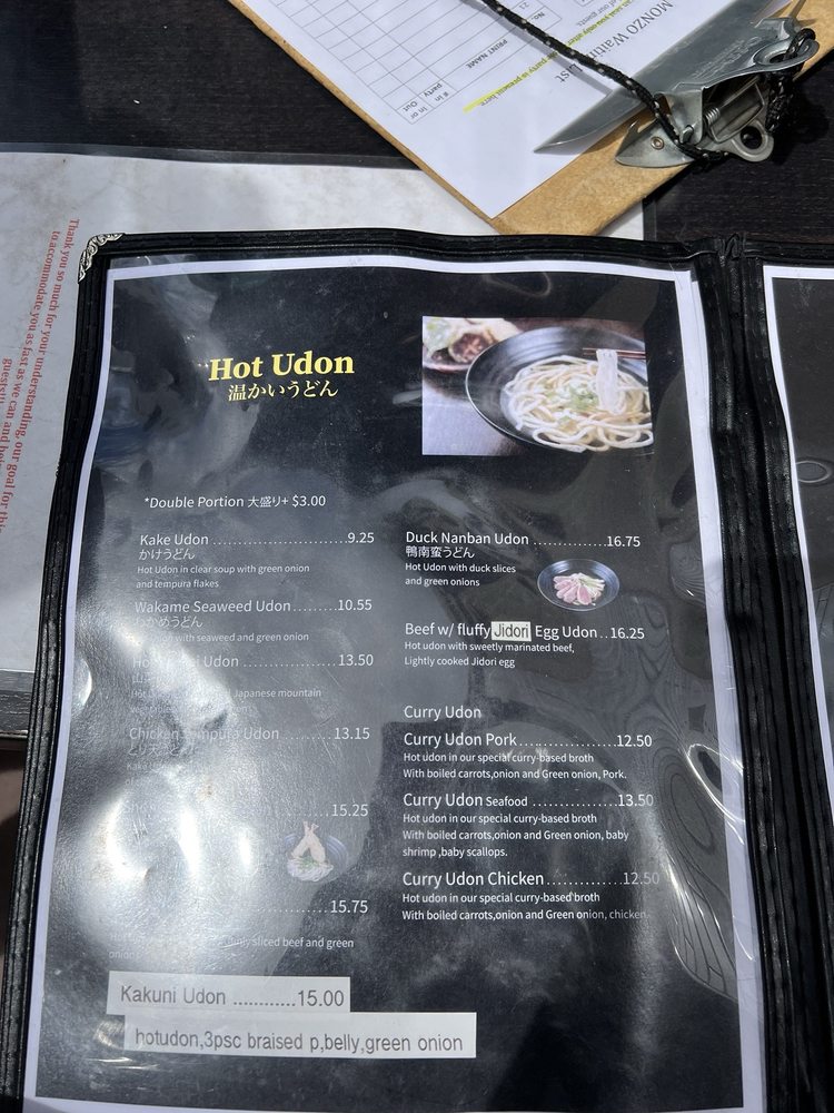 Marugame Monzo Menu (Update 2025)